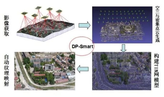 傾斜攝影三維自動建模軟件 Digital Photo Smart(以下簡稱 DP-Smart)是一套基于空地多源序列影像,無需人工干預,全自動生成高分辨率真三維模型的自動化建模軟件。軟件基于攝影測量、計算機視覺與計算幾何算法,支持全自動空三計算、密集點云生成、構建 TIN 網、自動紋理映射等步驟,實現真三維模型的快速生成。