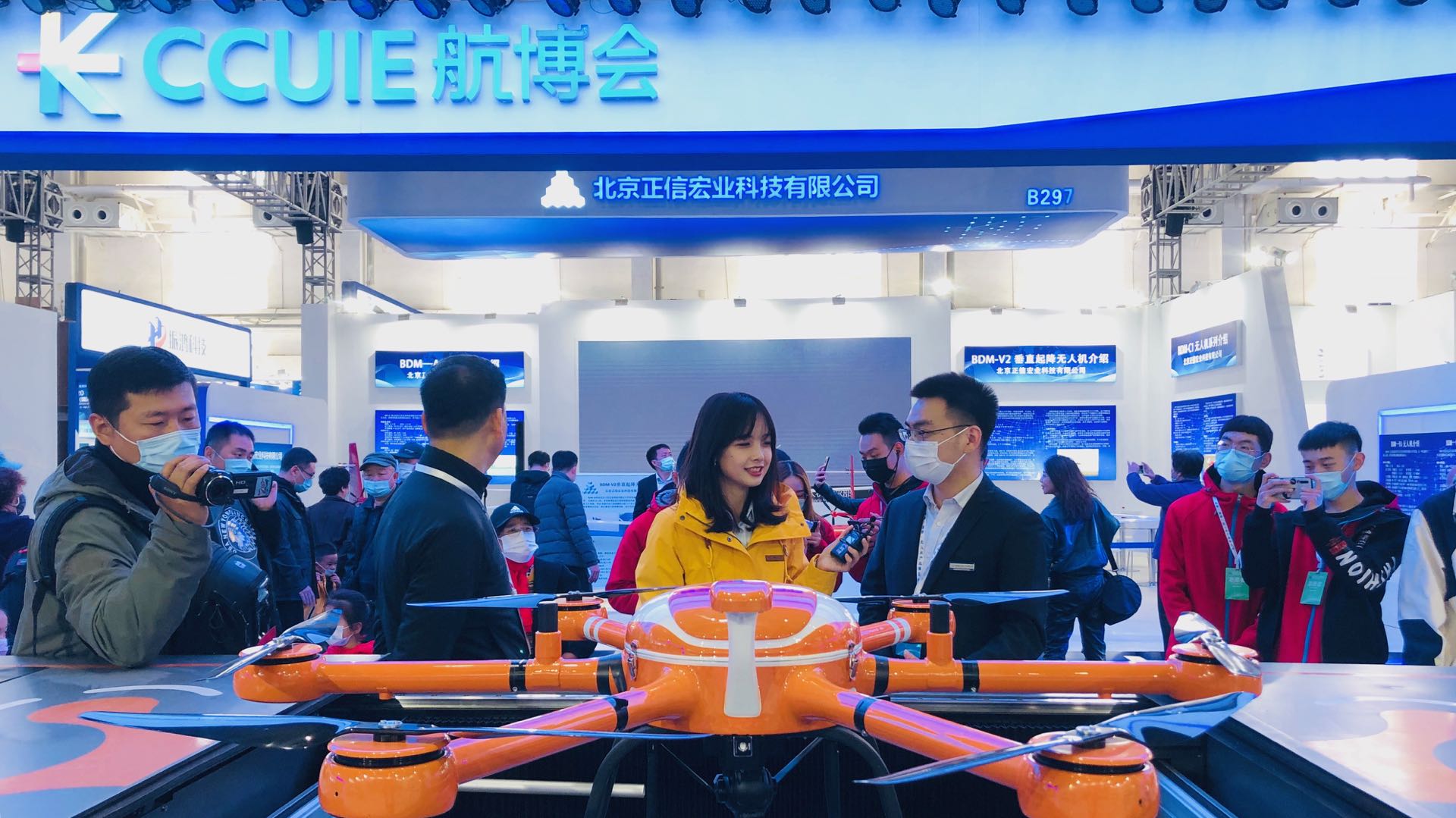 2020長春(國際)無人機博覽會為期三天,從10月16日至18日,前來參加展會的人員除了無人機行業的相關單位及企業也不乏對無人機充滿興趣的其他行業人士,蜂巢航宇相關負責人在展會期間也向眾多愛好者做出無人機行業相關科普。展會期間,蜂巢航宇接受了長春日報、長春晚報等媒體的記者采訪,并在央視新聞直播中接受記者王冰冰的采訪,將公司相關產品向各位觀眾做出介紹。