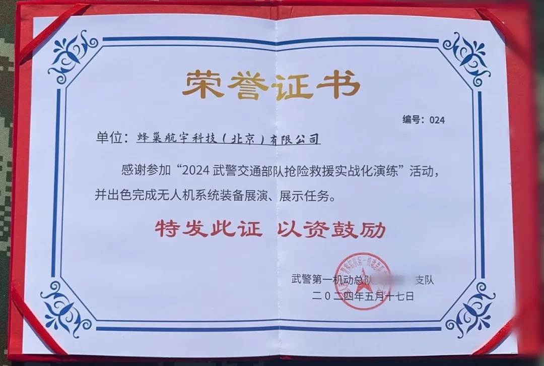 On May 17, Honeycomb Aerospace UAV participated in the "2024 Armed Police Traffic Force’s Rescue Combat Drill" of a detachment of the first mobile Corps of the Armed Police in a certain location in Hebei Province, and successfully completed the UAV system equipment demonstration and display task. The exercise simulated a variety of natural disasters and aimed to test and improve the practical application effect of information-based, unmanned and intelligent equipment in emergency situations.
