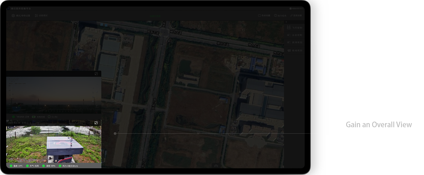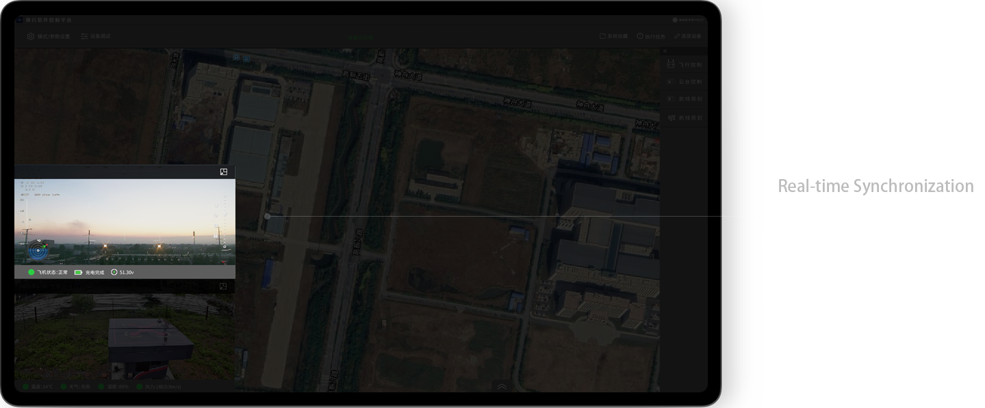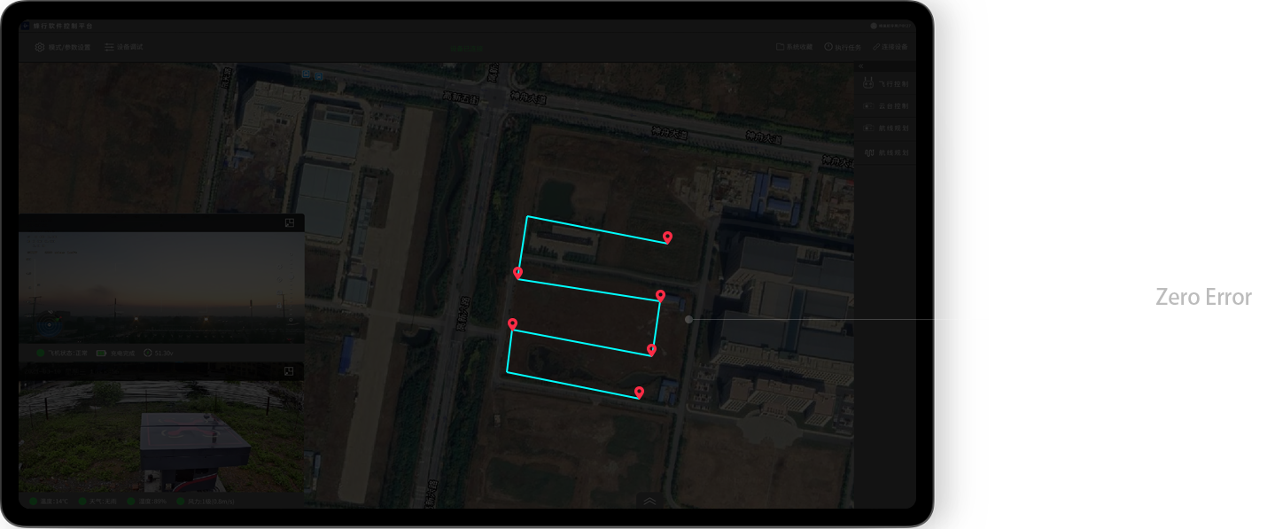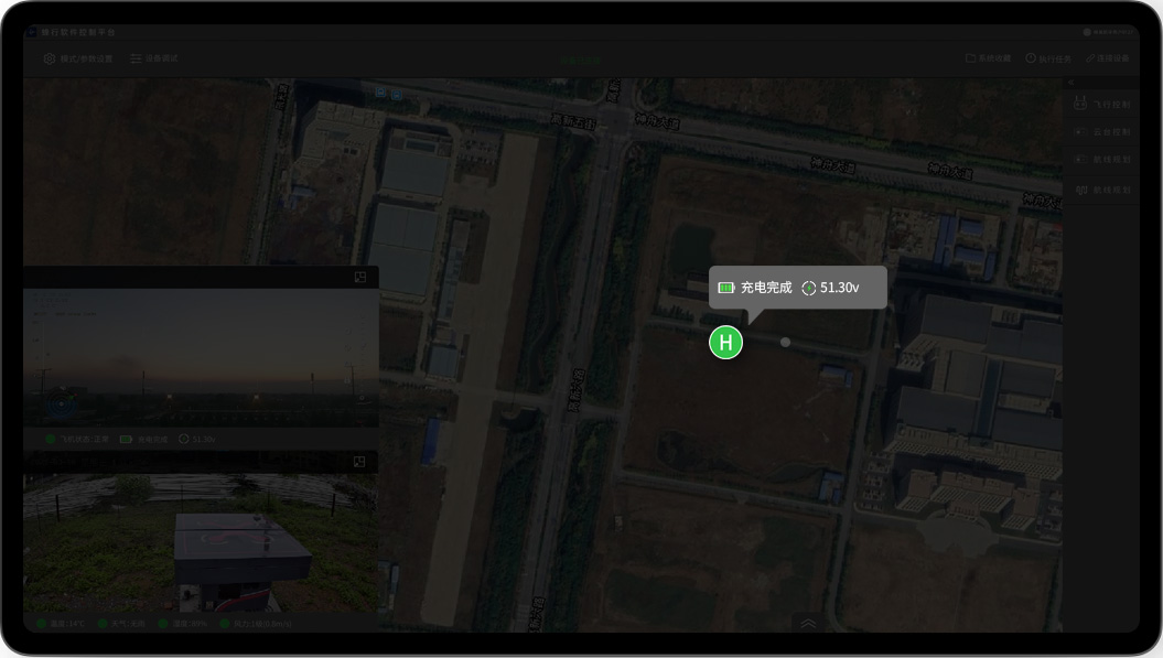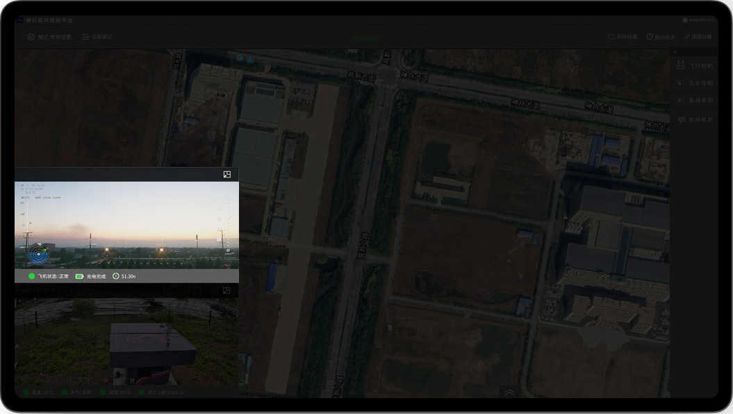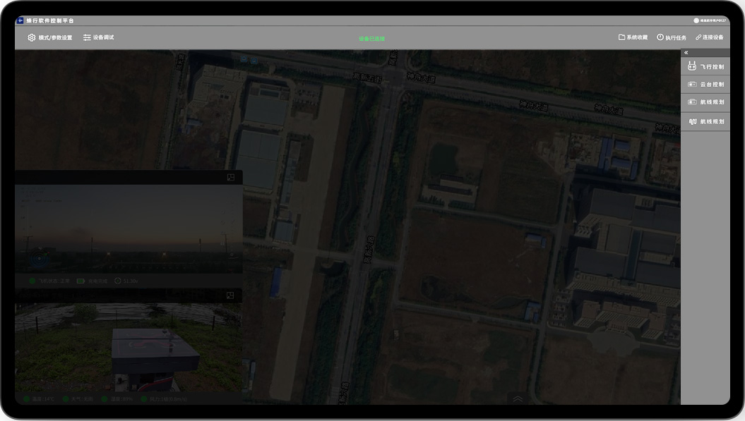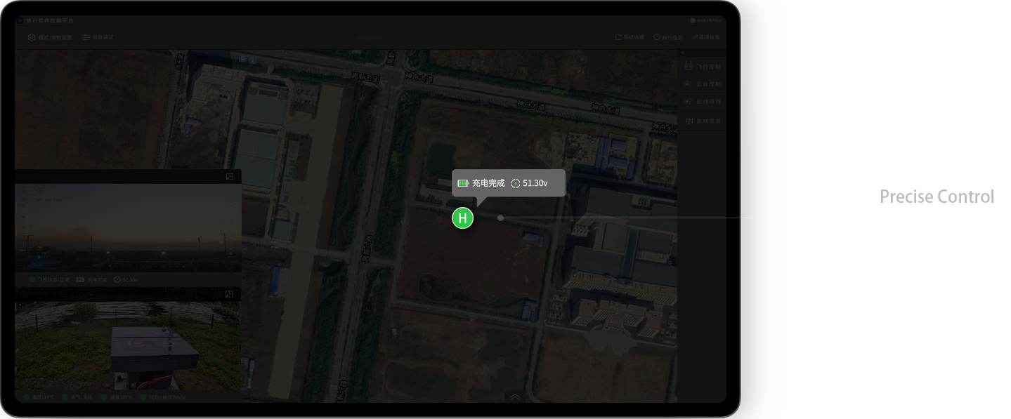 The Fengxing software control system is mainly used to monitor the drone's flight attitude data, position data and the operation of various sensors on the drone, and is used for route planning and remote control of the drone. The entire software can be divided into four modules for task management, equipment management, personnel management and data management.